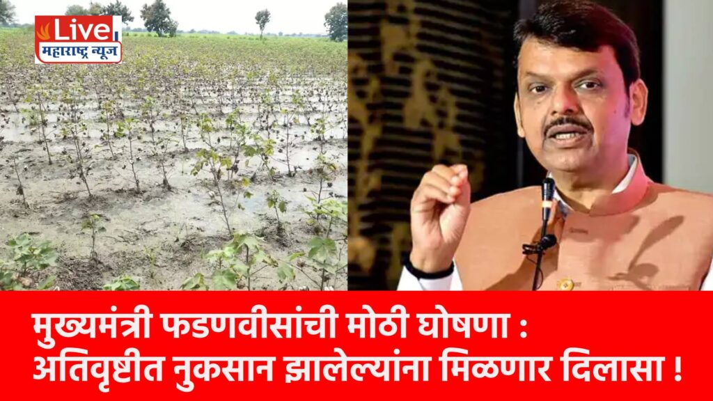 दरम्यान, अतिवृष्टीने ज्या ज्या प्रकारचे नुकसान झाले त्याची भरपाई देण्यासाठीचे सर्वंकष धोरण निश्चित करण्यात येणार असल्याचे मुख्यमंत्र्यांनी सांगितले नुकसानीची सर्व आकडेवारी जमा होताच मदतीच्या सर्वंकष धोरणाचा निर्णय केल्या जाईल. पुढील आठवड्याच्या आत हा निर्णय करून मदतीची घोषणा केली जाईल. तसेच, दिवाळीच्या आधी शेतकऱ्यांना मदत पोहचविण्याचा आमचा प्रयत्न असल्याचेही मुख्यमंत्री फडणवीस यांनी सांगितले.