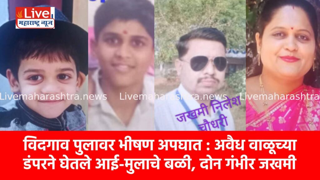 Home » विदगाव पुलावर भीषण अपघात : अवैध वाळूच्या डंपरने घेतले आई-मुलाचे बळी, दोन गंभीर जखमी