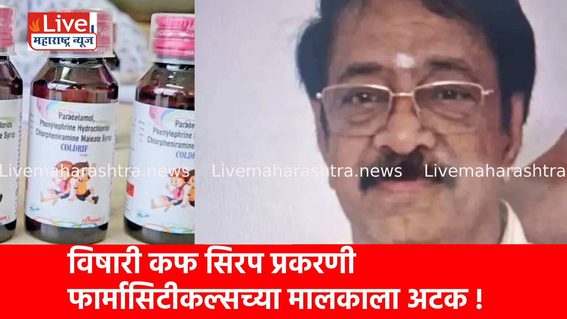 विषारी पिल्यानं मध्य प्रदेशातील २१ लहान मुलांचा मृत्यू झाला होता. त्यानंतर आता मध्य प्रदेश पोलिसांनी मोठी कारवाई केली असून चेन्नईमधुन स्रेसन फार्मासिटिकल्सचे मालक जी रंगनाथन यांना अटक करण्यात आली आहे. ७३ वर्षाचे रंगनाथन हे मद्रास मेडिकल कॉलेजमधून पासआऊट झालेले आहेत. त्यांनी चार दशापासून ते औषध निर्मितीमध्ये कार्यरत आहेत. त्यांनी सुरूवातीला प्रोनीट हे पोषण देणारं सिरप तयार केलं होतं. तिथून त्यांची ओळख निर्माण झाली होती.