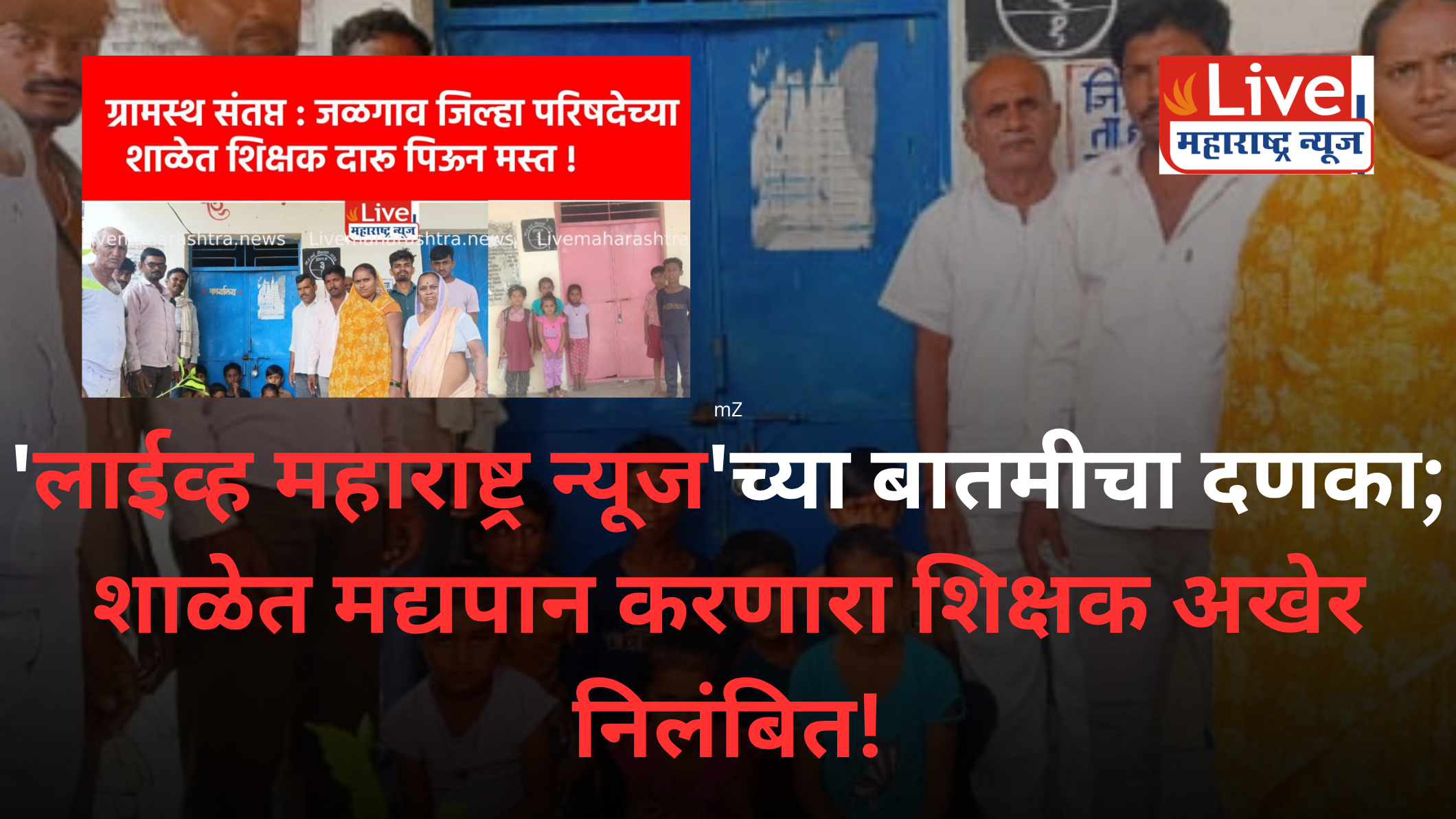 जळगाव (प्रतिनिधी): धरणगाव तालुक्यातील कवठळ येथील जिल्हा परिषद शाळेतील शिक्षक सुरेश चंद्रा सोनवणे यांना शाळेतच मद्यपान अवस्थेत आढळल्याप्रकरणी जिल्हा परिषदेने कठोर कारवाई केली आहे. ‘लाईव्ह महाराष्ट्र न्यूज’ने या गंभीर प्रकरणाची बातमी प्रकाशित केल्यानंतर प्रशासनाने त्याची तातडीने दखल घेऊन शिक्षकाला निलंबित केले आहे.