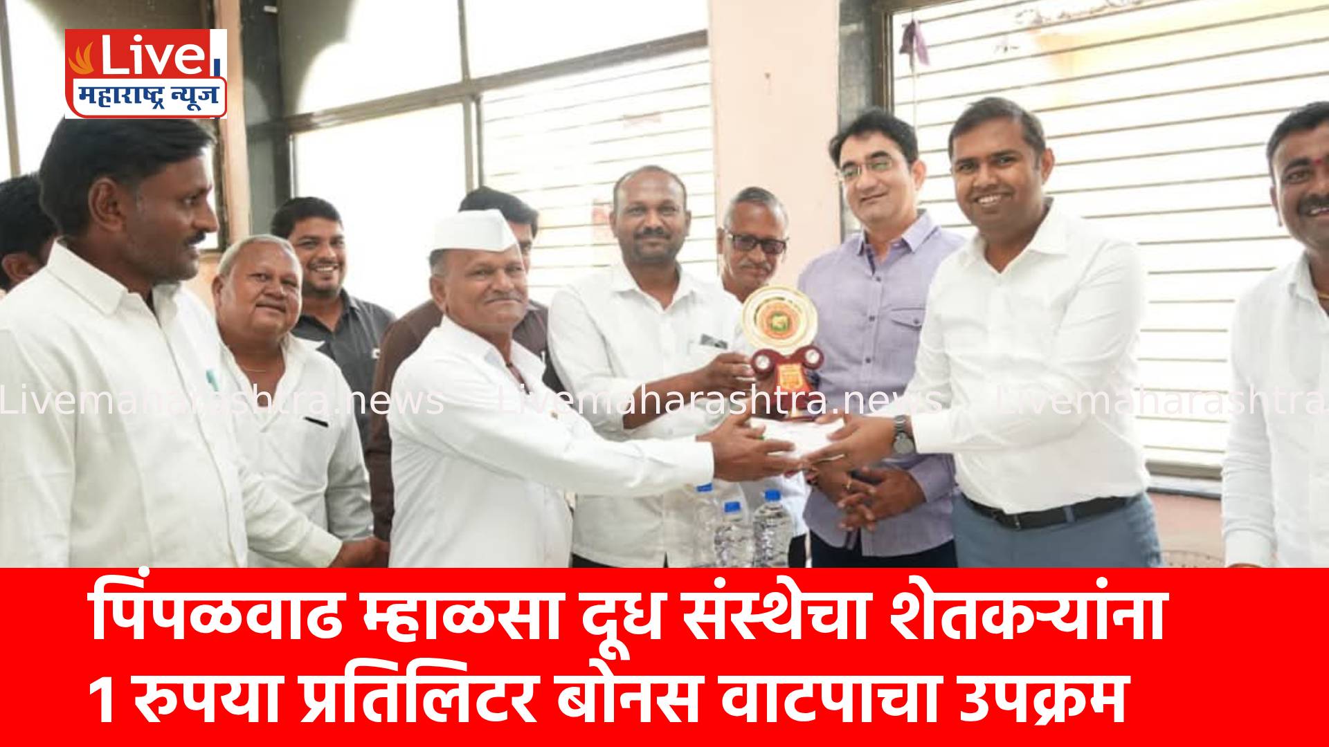 तालुक्यातील अग्रगण्य अश्या पिंपळवाढ म्हाळसा सहकारी दूध उत्पादक सोसायटीच्या वतीने आज दूध उत्पादकांना माझ्याहस्ते बोनस वाटप शुभारंभ करण्यात आला. दूध उत्पादक शेतकऱ्यांना जिल्हा दूध संघाच्या वतीने 50 पैसे व सोसायटीच्या नफ्यातून 50 पैसे असे एकूण 1 रुपये प्रतिलिटर बोनस देण्यात येत आहे. आपल्या नफ्याचा वाटा शेतकऱ्यांना देण्याचा पिंपळवाड म्हाळसा सोसायटीचा हा निर्णय निश्चितच कौतुकास्पद असून खऱ्या अर्थाने शेतकऱ्यांच्या कष्टाचा सन्मान त्यांनी केला आहे.