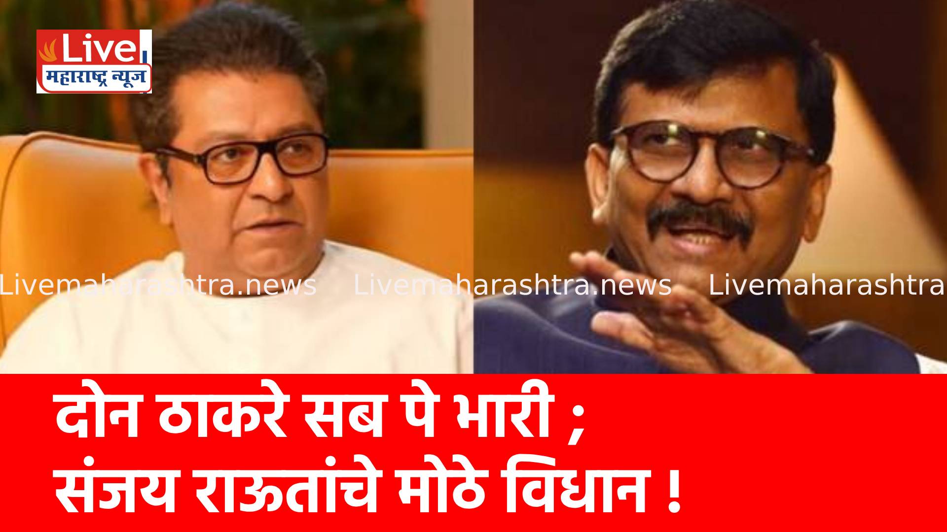 ठाणे महानगरपालिकेत शिवसेना ठाकरे गट आणि मनसे एकत्र लढणार आहेत, अशी मोठी खासदार संजय राऊत यांनी केली आहे. दोन ठाकरे आहेत. दोन ठाकरे सब पे भारी. यावर चर्चा होत राहील. हा सोबत आहे का? तो सोबत आहे का? पण या क्षणी दोन ठाकरे करणार सगळ्यांच्या ठिकऱ्या, असा थेट इशारा त्यांनी दिला. जेव्हा दोन भाऊ एकत्र येणार तेव्हा आमची ताकद दिसेल, असेही राऊत यावेळी बोलताना म्हणाले.