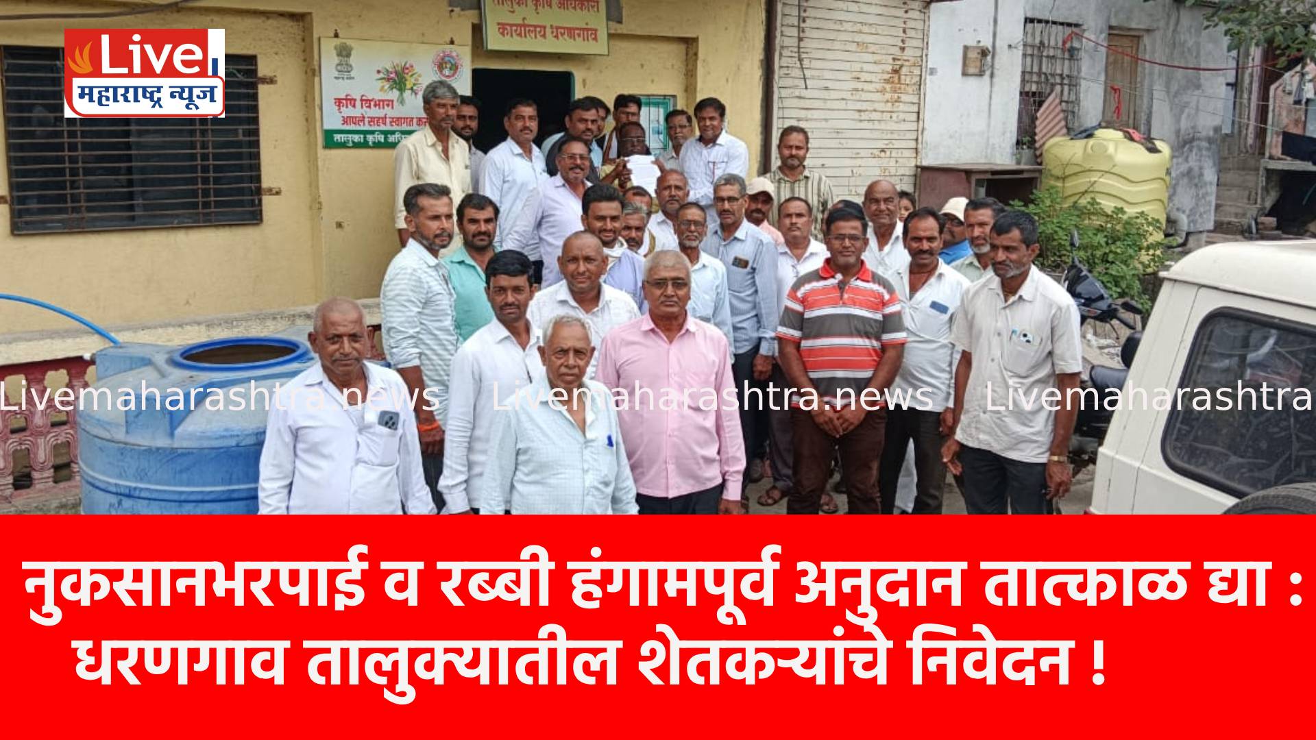 धरणगाव तालुक्यातील शेतकरी गटातर्फे अतिवृष्टीग्रस्त शेतकऱ्यांना संपूर्ण नुकसानभरपाई व रब्बी हंगामपूर्व अनुदान तात्काळ वितरित करण्याच्या मागणीसाठी तहसीलदार तथा कृषी अधिकारी, धरणगाव यांना प्रत्यक्ष भेट देऊन निवेदन सादर करण्यात आले.
