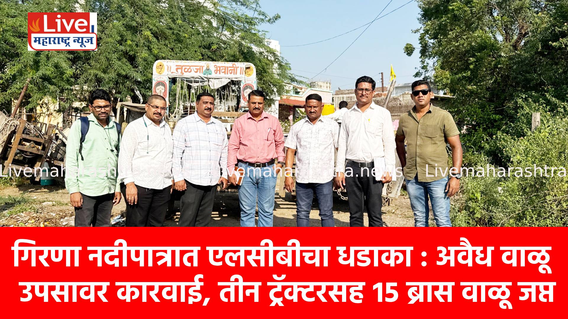 Home » गिरणा नदीपात्रात एलसीबीचा धडाका : अवैध वाळू उपसावर कारवाई, तीन ट्रॅक्टरसह १५ ब्रास वाळू जप्त