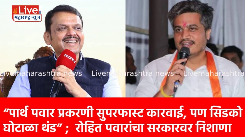 राज्याचे मुख्यमंत्री देवेंद्र फडणवीस यांच्या जवळच्या व्यक्तीवर कारवाई होत नाही. पण ज्यांचा राजकीय गेम करायचा आहे त्याच्यावर मात्र कारवाई होते. सरकारच्या एका विभागाने सांगून सुद्धा मी समोर आणलेल्या सिडको घोटाळ्याप्रकरणी कारवाई झाली नाही, पण पार्थ पवार यांच्या प्रकरणी सुपरफास्ट कारवाई केली जात आहे, असा भेदभाव न करता कारवाई करण्यात यावी असे राष्ट्रवादी काँग्रेस शरद पवार गटाचे आमदार रोहित पवार यांनी म्हटले आहे.