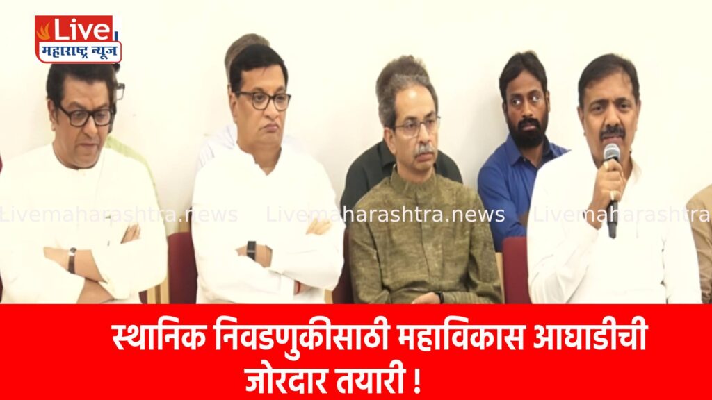 राज्यात स्थानिक निवडणूक जाहीर झाली असून महायुतीची जोरदार तयारी असून आता काँग्रेस, राष्ट्रवादी काँग्रेस (शप) आणि शिवसेना (उबाठा) यांनी सोमवारी स्थानिक स्वराज्य संस्थांच्या आगामी निवडणुका एकत्र लढण्याच्या तयारीसाठी राज्यस्तरीय समन्वय समिती स्थापन करण्याची घोषणा केली. राज ठाकरे यांच्या नेतृत्वातील मनसेकडुन युती करण्याचा कोणताही प्रस्ताव महाविकास आघाडीला अद्याप प्राप्त झालेला नाही, असे मित्रपक्षांनी स्पष्ट केले.