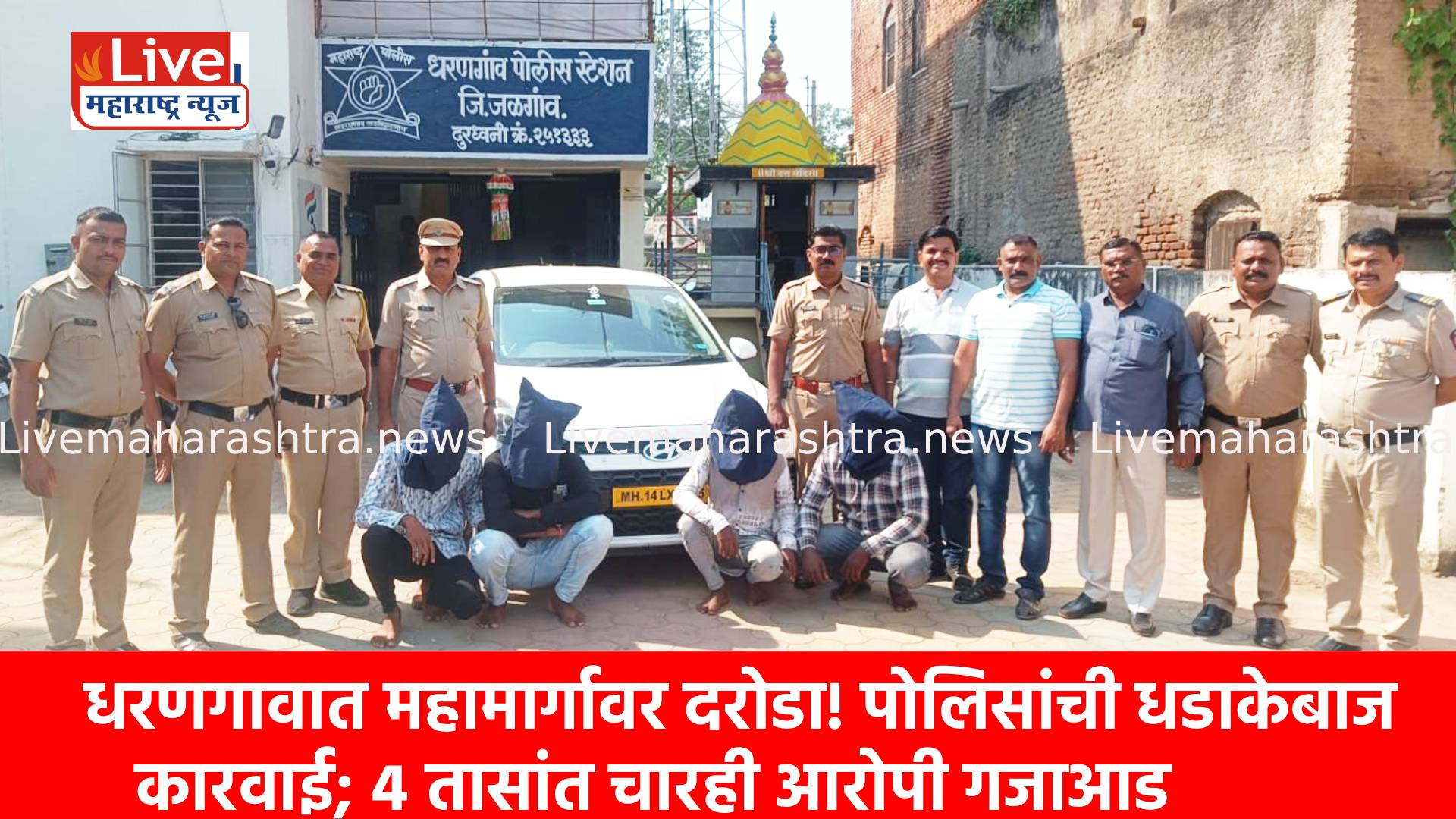 मिळालेल्या माहितीनुसार, खामगाव येथून कन्स्ट्रक्शनच काम आटोपून नंदुरबारकडे जाणारे ठेकेदार शंकर बामणी यांच्यासोबत फिर्यादी धनंजय शंकर पाटील (रा. खोंडामळी, जि. नंदुरबार) हे त्यांच्या वाहन (एमपी १३, झेडयू- ९४४०) ने जात असताना मुसळी फाट्यावर १२ नोव्हेंबरला ते जेवणासाठी अर्जुना हॉटेलला थांबले. जेवण केल्यानंतर रात्री ११.१५ वाजेच्या सुमारास ते मार्गस्थ झाले. दरम्यान, मुसळी गावाजवळ चौघांनी पांढऱ्या रंगाच्या हुंडाई कार रस्त्यावर आडवी लावून शंकर बामणी व धनंजय पाटील व सोबत असलेल्या कामगारांना गाडीतून बाहेर ओढून मारहाण केली. तसेच त्यांच्या ताब्यातील ३० हजार रुपये बळजबरीने काढून पोबारा केला. दरम्यान, धरणगाव पोलीस ठाण्याचे पो.नि. सुनील पवार, पाळधी पोलीस चौकीचे स.पो. नि. प्रशांत कंडारे, पीएसआय संतोष पवार, पो.हे.कॉ. महेंद्र बागुल, समाधान भागवत, सुधीर चौधरी, संदीप पाटील, किशोर भोई हे रात्री गस्तीवर असताना त्यांना ही माहिती मिळाली. त्यांना तक्रारदारांनी आरोपींचे वर्णन व माहिती सांगितली.