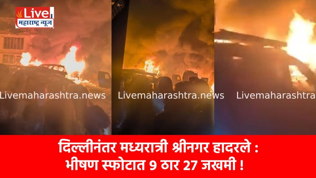 दिल्लीनंतर मध्यरात्री श्रीनगर हादरले : भीषण स्फोटात ९ ठार २७ जखमी !