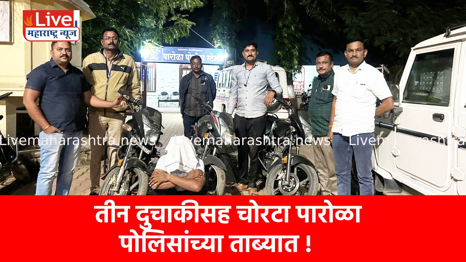 पारोळा शहरात वाढत्या मोटारसायकल चोरीच्या घटनांना आळा घालण्यासाठी पोलिसांनी मोठी कारवाई केली आहे. पारोळा पोलीस स्टेशनमध्ये गु.र. नं. ३०७/२०२४ भा.दं.वि. कलम ३०३(२) अंतर्गत दाखल झालेल्या मोटारसायकल चोरीच्या गुन्ह्याचा तपास करताना स्थानिक गुन्हे शाखेच्या पथकाने एक आरोपीला अटक करून त्याच्याकडून तीन चोरीच्या मोटारसायकली जप्त केल्या.
