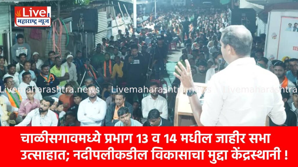 सभेत नगराध्यक्ष पदाच्या अधिकृत उमेदवार सौ. प्रतिभा मंगेश चव्हाण तसेच प्रभागातील सर्व भाजप उमेदवारांची उपस्थिती होती. भाजपच्या टीम व स्थानिक कार्यकर्त्यांनी नागरिकांशी संवाद साधत पक्षाच्या योजनांची माहिती दिली. आमदार चव्हाण यांनी आवाहन केले की, “प्रभाग १३ व १४ मधील सर्व उमेदवारांना विक्रमी मतांनी निवडून देऊन विकासाचा वेग वाढवण्यास नागरिकांनी हातभार लावावा. ‘द बेस्ट चाळीसगाव’ घडविण्यासाठी तुमचा पाठींबा अत्यावश्यक आहे.” सभेला परिसरातील युवक, महिला आणि ज्येष्ठ नागरिकांनीही मोठ्या संख्येने उपस्थित राहून उत्साहाचे वातावरण निर्माण केले.