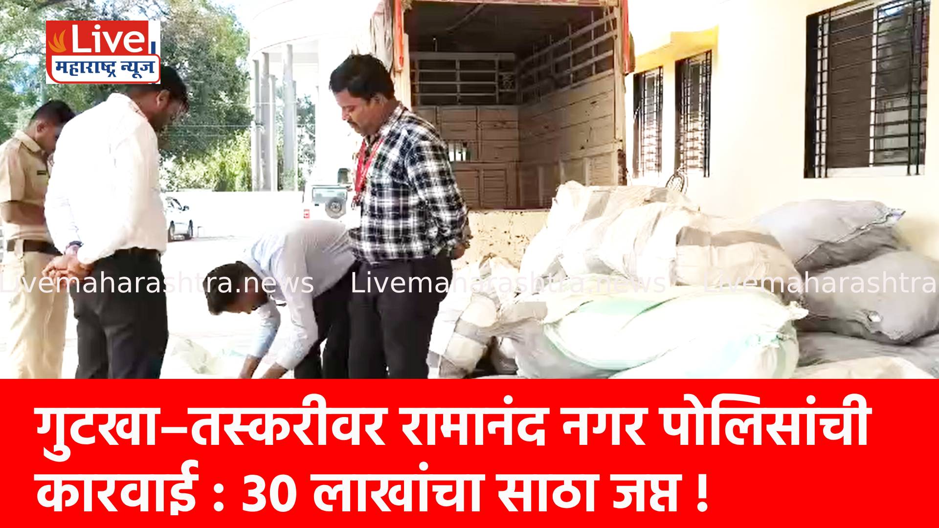 राज्यात प्रतिबंधित असलेल्या गुटख्याची वाहतूक करणाऱ्या मालवाहू वाहनावर रामानंद नगर पोलिसांनी मोठी कारवाई करत सुमारे ३० लाख २० हजार रुपयांचा गुटखा जप्त केला. या प्रकरणात वाहन चालक किरण भास्कर नांदरे (४३, रा. सेंट्रल बँक कॉलनी, पिंप्राळा) याला ताब्यात घेण्यात आले असून त्याच्याविरुद्ध गुन्हा दाखल करण्यात आला आहे.