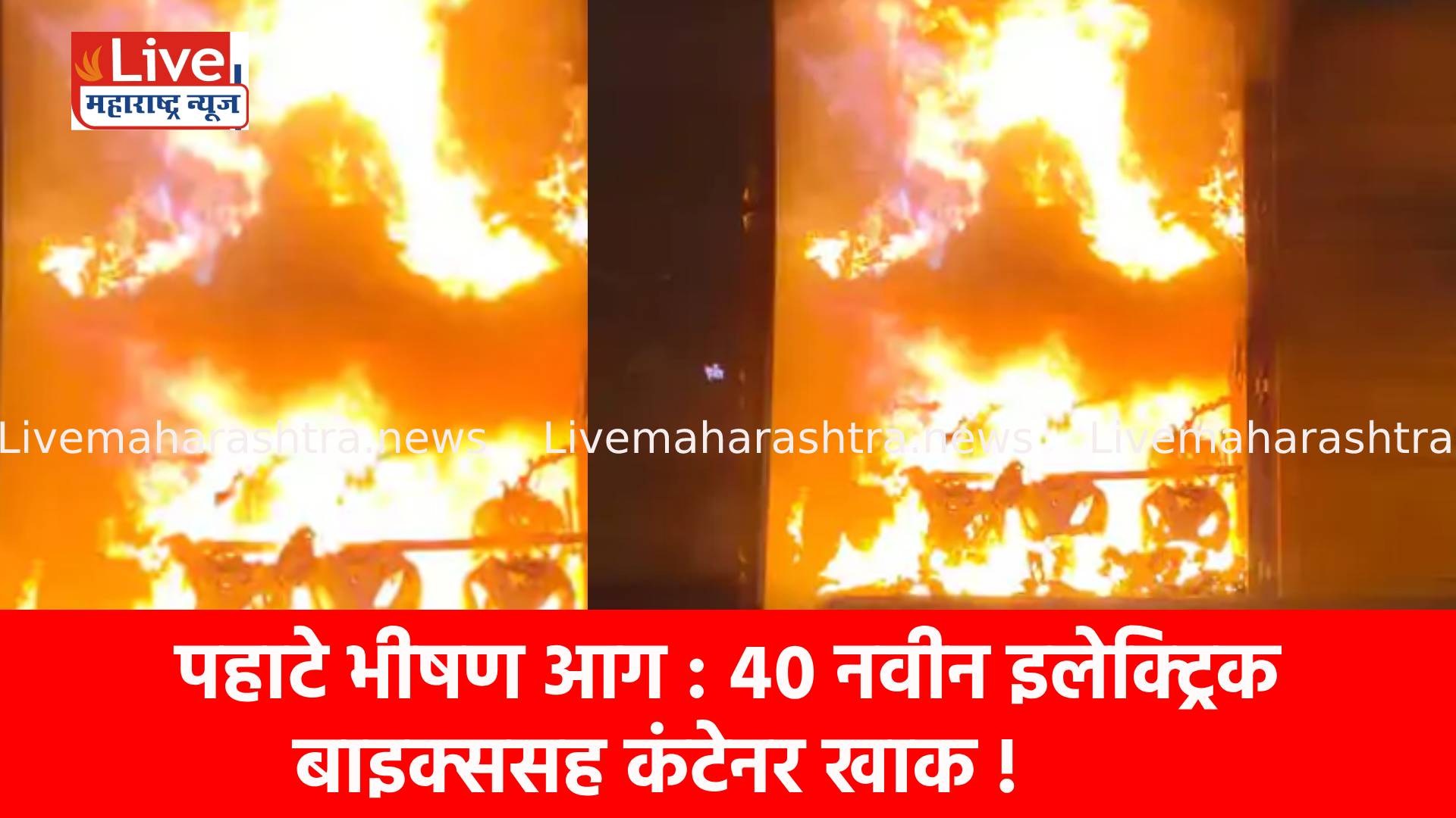 पहाटे भीषण आग : ४० नवीन इलेक्ट्रिक बाइक्ससह कंटेनर खाक !
