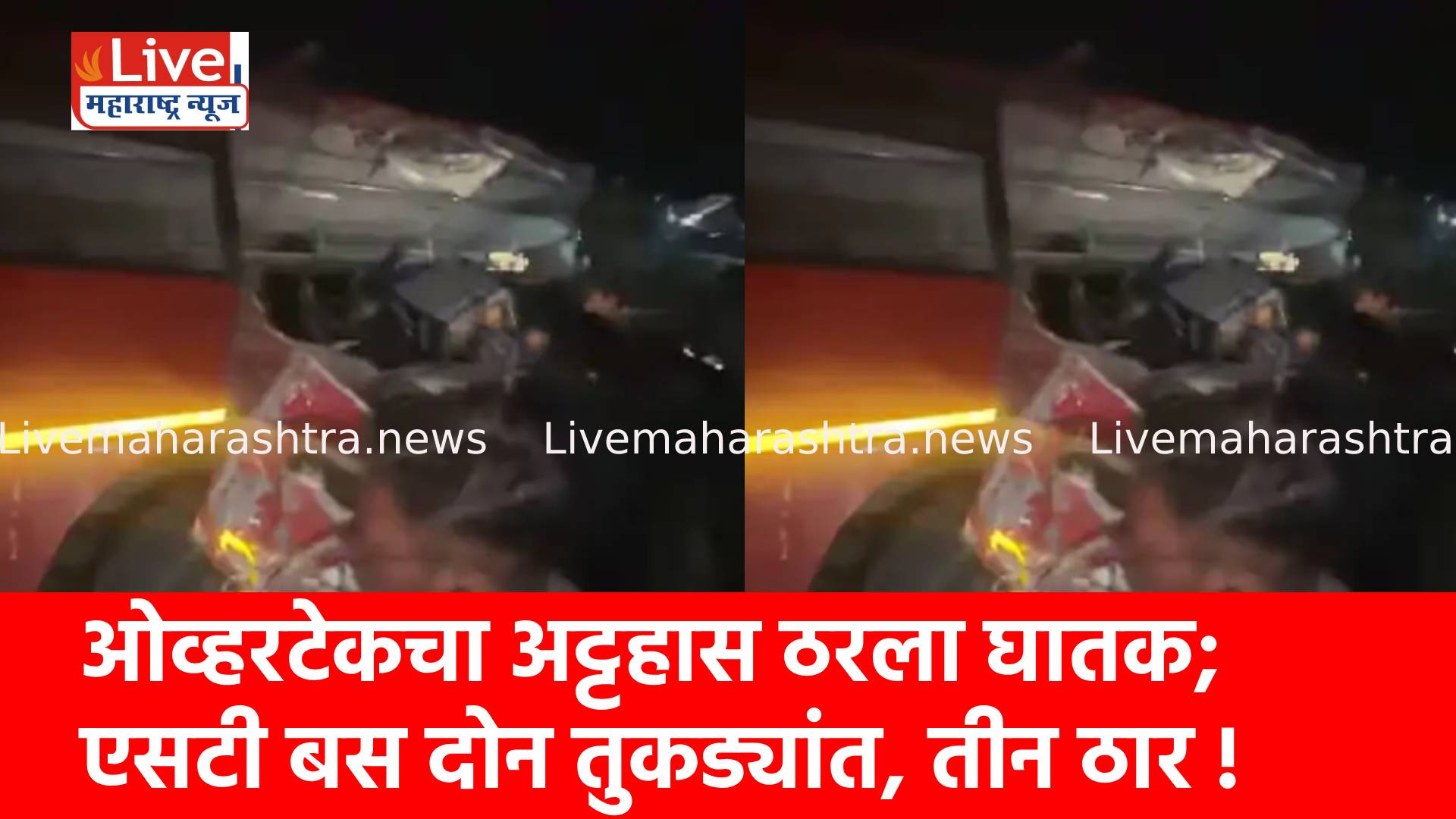 चंद्रपूर–यवतमाळ महामार्गावर वेग आणि चुकीच्या ओव्हरटेकमुळे गुरुवारी रात्री झालेल्या भीषण अपघातात तिघांचा जागीच मृत्यू झाला असून अंदाजे १४ जण जखमी झाले आहेत. मारेगाव तालुक्यातील जळका फाट्याजवळ रात्री आठच्या सुमारास एसटी बस आणि भरधाव ट्रक यांच्यात समोरासमोर धडक झाली. या धडकेची तीव्रता इतकी भयानक होती की एसटी बसची ड्रायव्हर साइड अक्षरशः दबून वाहनाचा पुढील भाग दोन तुकड्यांत विभक्त झाला.