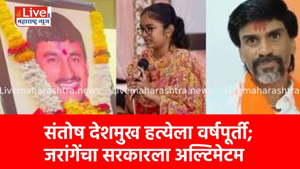 मस्साजोगचे सरपंच संतोष देशमुख यांच्या निर्घृण हत्येला आज एक वर्ष पूर्ण झाले असताना, सरकारने आरोपींना एका वर्षात फाशी देण्याचे दिलेले आश्वासन अद्याप पूर्ण न झाल्यामुळे मराठा आरक्षण चळवळीचे नेते मनोज जरांगे पाटील यांनी तीव्र नाराजी व्यक्त केली आहे. देशमुख कुटुंबीयांची भेट घेतल्यानंतर जरांगे यांनी पुन्हा एकदा नाव न घेता मंत्री धनंजय मुंडे आणि राज्य सरकारवर गंभीर आरोप केले. “या प्रकरणातील आरोपी सुटले, त्या दिवशी प्रथम जिल्हा आणि नंतर संपूर्ण महाराष्ट्र बंद करू,” असा कडक इशारा त्यांनी दिला.