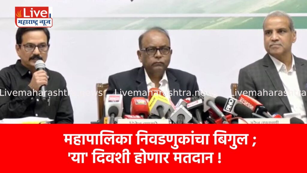 राज्यातील गेल्या सात वर्षांपासून रखडलेल्या व मुदत संपलेल्या महापालिकांच्या निवडणुकांचा कार्यक्रम अखेर राज्य निवडणूक आयोगाने आज (१५ डिसेंबर) जाहीर केला. राज्य निवडणूक आयुक्त दिनेश वाघमारे यांनी पत्रकार परिषदेत याबाबत अधिकृत घोषणा केली.