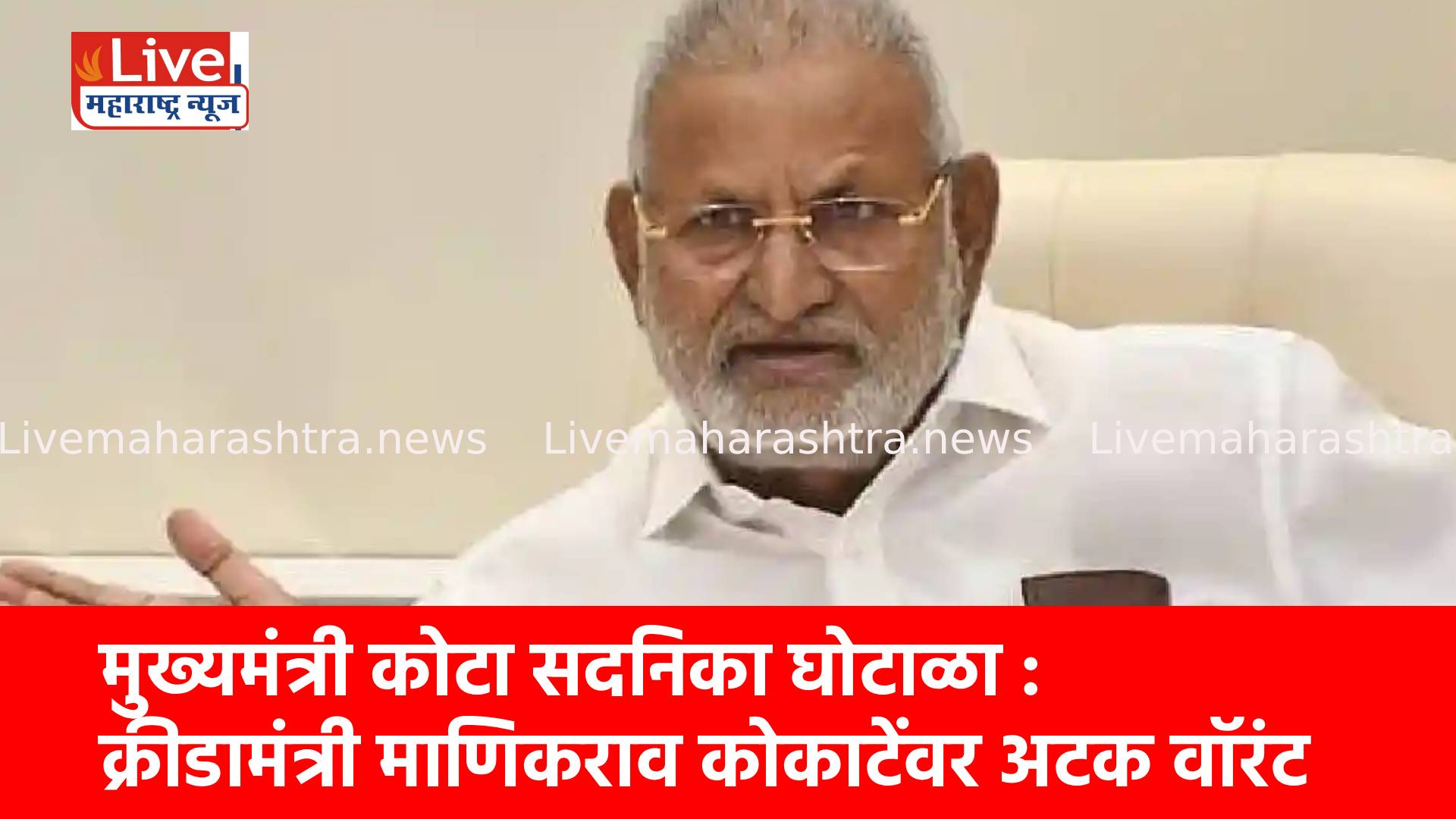 राज्यातील मुख्यमंत्री कोट्यातून सदनिका लाटल्याप्रकरणी अडचणीत आलेले राज्याचे क्रीडामंत्री तथा निफाडचे आमदार माणिकराव कोकाटे यांच्या अडचणी वाढल्या असून, अखेर त्यांच्या अटकेचे वॉरंट जारी करण्यात आले आहे. नाशिक जिल्हा प्रथम वर्ग न्यायालयाच्या न्यायमूर्ती रुपाली नरवडीया यांनी हा महत्त्वपूर्ण आदेश दिला आहे. या आदेशामुळे राज्याच्या राजकीय वर्तुळात खळबळ उडाली आहे.
