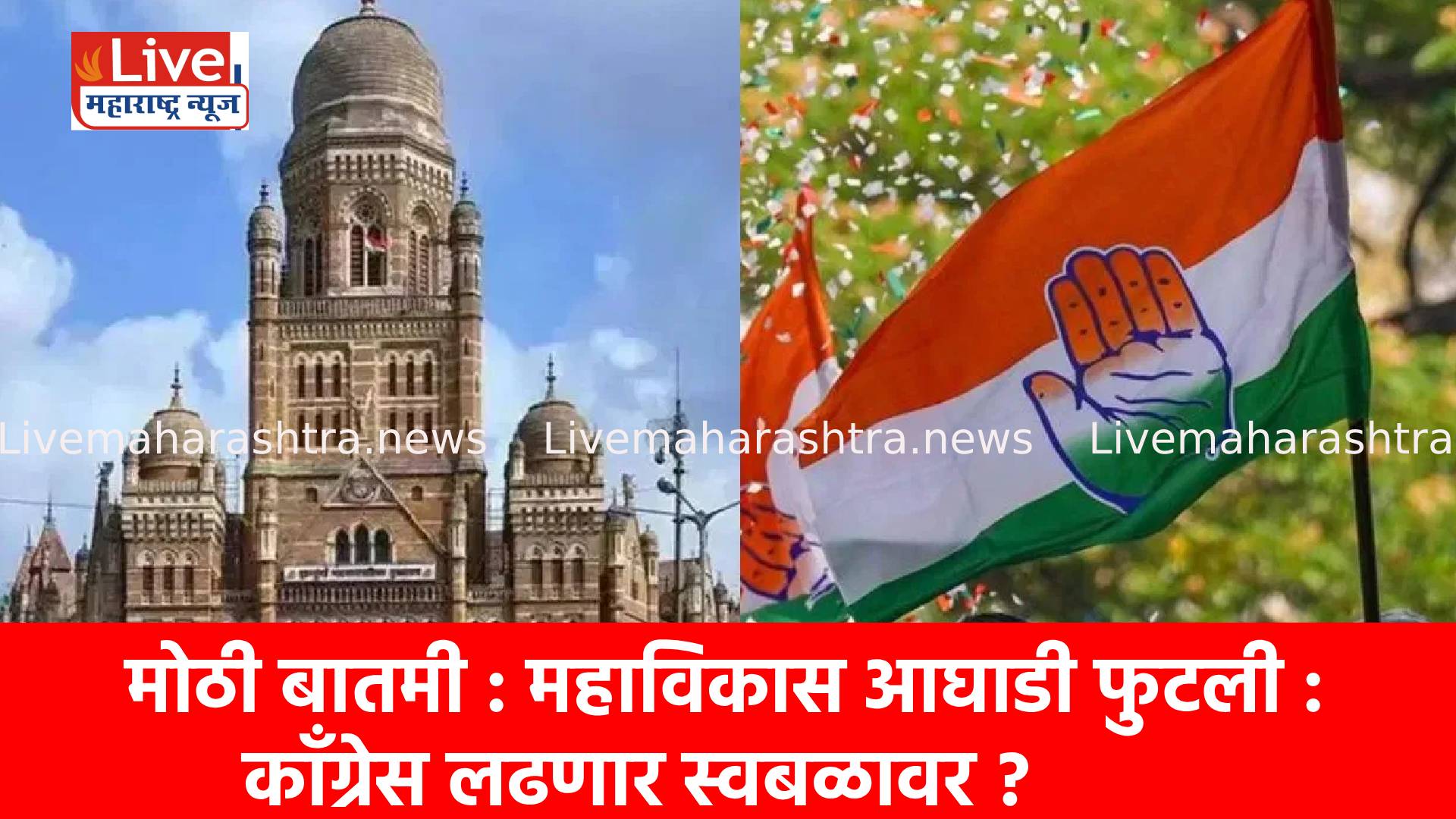 एकीकडे महायुतीची जागावाटपावर चर्चा सुरू आहे. तर दुसरीकडे मुंबई महापालिकेच्या निवडणुकीपूर्वी महाविकास आघाडीत मोठी फूट पडली आहे. काँग्रेसने मुंबई महानगर पालिकेची निवडणूक स्वबळावर लढण्याची घोषणा केली आहे. यामुळे आता मुंबई महानगरपालिकेची निवडणूक अधिक रंगतदार होणार आहे.