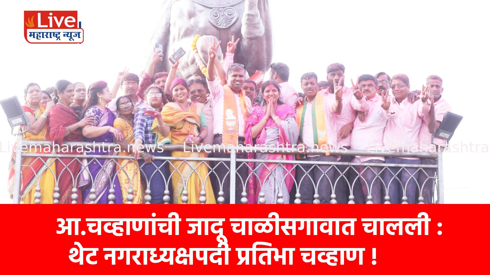 जळगाव जिल्ह्याचे लक्ष लागून असलेल्या चाळीसगाव नगरपालिकेवर भाजपने बहुमताचा झेंडा फडकविला असून, थेट नगराध्यक्षपदी प्रतिभा मंगेश चव्हाण यांनी शहर विकास आघाडीच्या पद्मजा राजीव देशमुख यांचा ६०१२ मतांनी पराभव केला. एकूण ३६ पैकी भाजपने २४, शहर विकास आघाडी १०, तर दोन अपक्षांनाही कपाळी विजयाचा टिळा लागला.