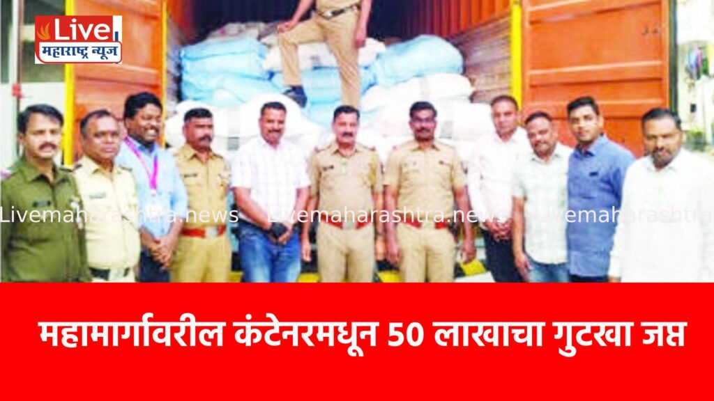 या वेळी त्या कंटेनरमध्ये प्रतिबंधित गुटखा असल्याचे आढळले. त्यानंतर अन्न सुरक्षा अधिकारी शरद पवार यांना बोलावून पंचनामा करण्यात आला. त्यात १२८ गोण्या गुटखा होता. त्याची अंदाजे ४८ लाख २२ हजार २६४ किंमत असून २५ लाखाचा कंटेनर असा एकूण ७३ लाख २२ हजार २६४ रुपयांचा मुद्देमाल जप्त करण्यात आला आहे. यातील संशयित प्रदीप भाटू पाटील (वय ४९) यास ताब्यात घेण्यात आले आहे.