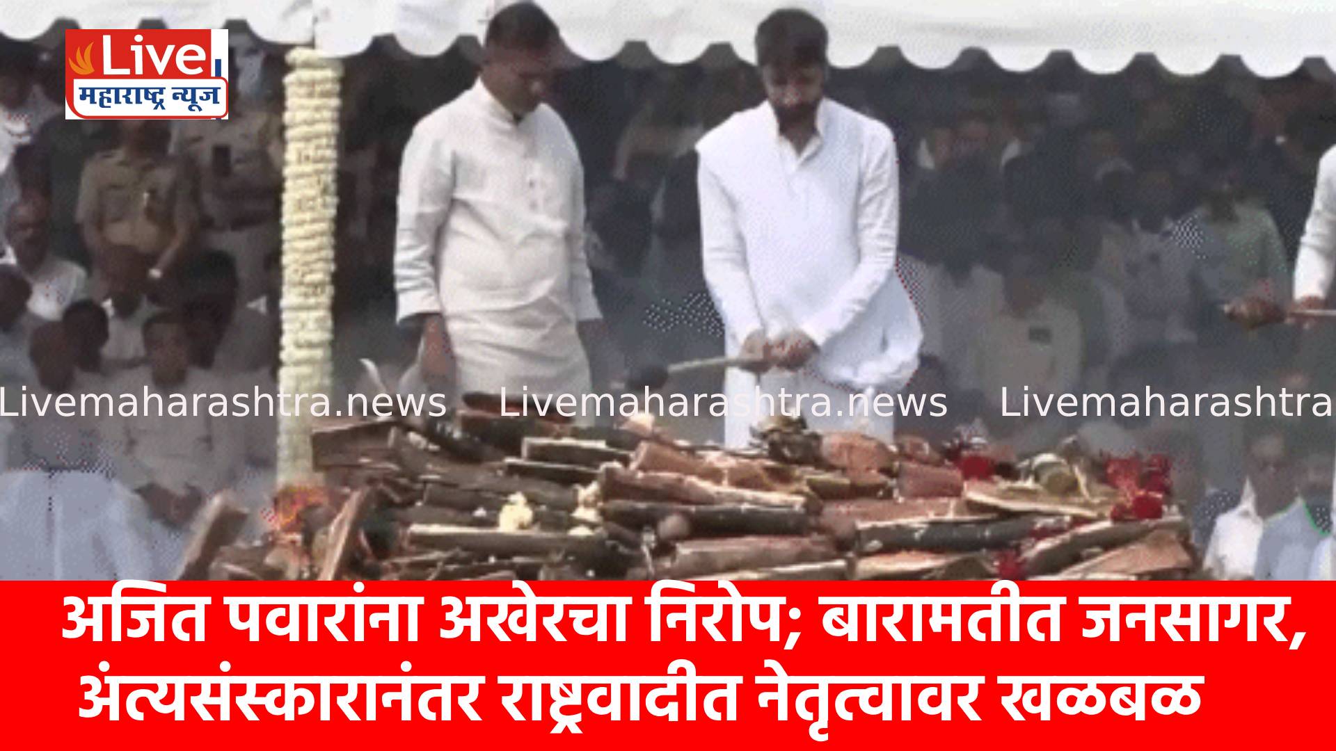 महाराष्ट्राचे माजी उपमुख्यमंत्री अजित पवार यांच्या पार्थिवावर गुरुवारी बारामतीतील विद्या प्रतिष्ठानच्या मैदानावर शासकीय सन्मानात अंत्यसंस्कार करण्यात आले. पुत्र पार्थ पवार आणि जय पवार यांनी चितेला मुखाग्नी दिला. अंत्यविधीच्या वेळी उपस्थित हजारो समर्थक, कार्यकर्ते आणि नागरिकांच्या डोळ्यांत अश्रू तरळत होते. पत्नी सुनेत्रा पवार यांनी पतीच्या पार्थिवावर गंगाजल अर्पण करून अंतिम निरोप दिला.
