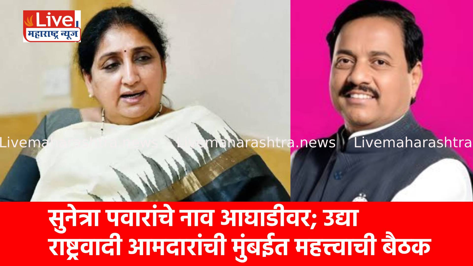 राष्ट्रवादीकडे असलेले उपमुख्यमंत्रिपद हे राष्ट्रवादीकडेच कायम राहणार असल्याचे जवळपास निश्चित मानले जात आहे. त्या पार्श्वभूमीवर पक्ष नेतृत्वाकडून सर्व आमदारांची बैठक घेऊन उपमुख्यमंत्रिपदाबाबत अंतिम निर्णय जाहीर केला जाणार आहे. या बैठकीत सुनेत्रा पवार यांच्यासह दोन ते तीन नावांवर चर्चा होण्याची शक्यता आहे.