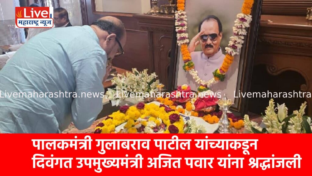 जळगाव जिल्ह्याचे पालकमंत्री गुलाबराव पाटील यांनी आज दिवंगत उपमुख्यमंत्री तथा ज्येष्ठ नेते अजित पवार यांच्या बारामती येथील निवासस्थानी भेट देऊन त्यांना भावपूर्ण श्रद्धांजली अर्पण केली.