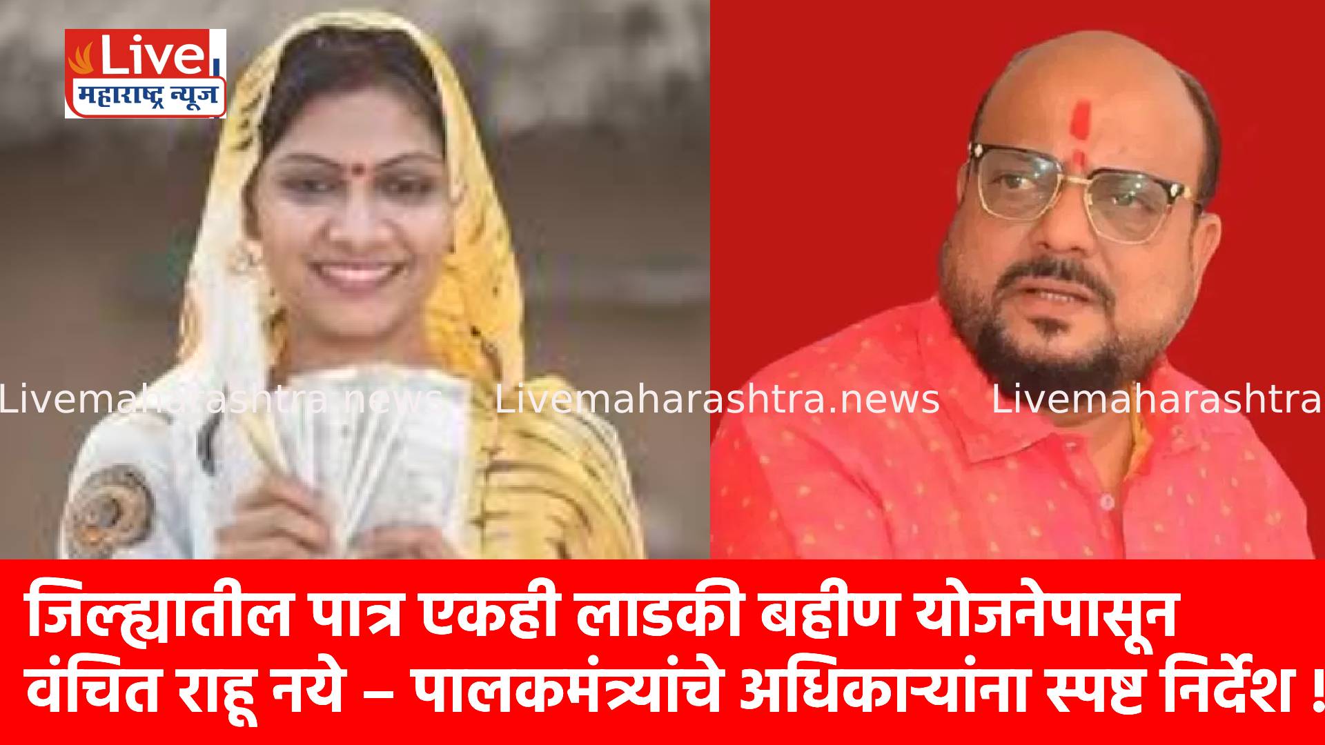 जिल्ह्यातील पात्र एकही लाडकी बहीण योजनेपासून वंचित राहू नये – पालकमंत्र्यांचे अधिकाऱ्यांना स्पष्ट निर्देश !