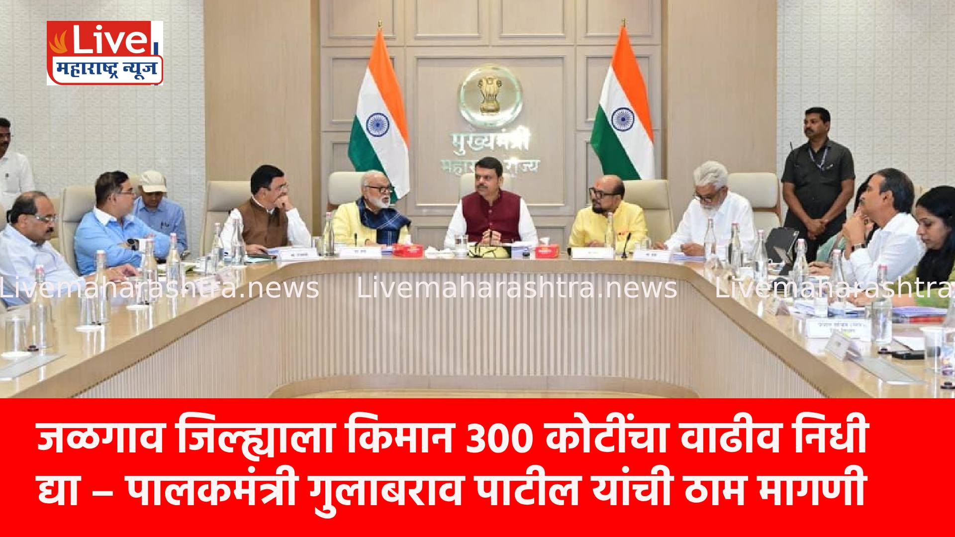 जिल्हा वार्षिक योजना (सर्वसाधारण) सन 2026-27 चा प्रारूप आराखडा अंतिम करण्यासाठी मुख्यमंत्री तथा वित्त व नियोजन मंत्री देवेंद्र फडणवीस यांच्या अध्यक्षतेखाली सह्याद्री अतिथीगृह, मुंबई येथून दूरदृश्य प्रणालीद्वारे राज्यस्तरीय बैठक पार पडली. या बैठकीत पालकमंत्री गुलाबराव पाटील यांनी जळगाव जिल्ह्यासाठी डीपीडीसी अंतर्गत किमान 300 कोटी रुपयांचा वाढीव निधी देण्याची ठाम मागणी केली. या मागणीवर मुख्यमंत्री देवेंद्र फडणवीस यांनी सकारात्मकता दर्शविली.