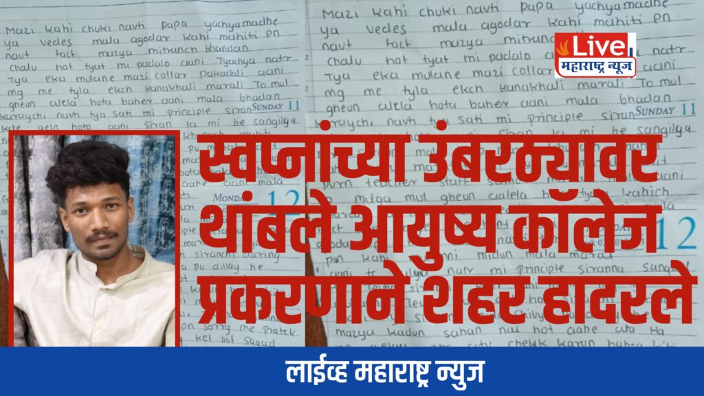 जळगाव शहरातील Deokar College of Pharmacy येथे शिक्षण घेत असलेल्या २० वर्षीय श्याम प्रभाकर पाटील या विद्यार्थ्याच्या मृत्यूने शहरात हळहळ व्यक्त होत आहे. कॉलेजमध्ये कथित मारहाण आणि सार्वजनिक अपमान झाल्यानंतर त्याने टोकाचे पाऊल उचलल्याचा आरोप कुटुंबीयांनी केला आहे.