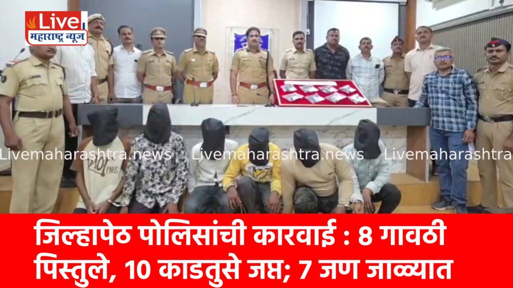 जिल्हापेठ पोलिसांची कारवाई : ८ गावठी पिस्तुले, १० काडतुसे जप्त; ७ जण जाळ्यात