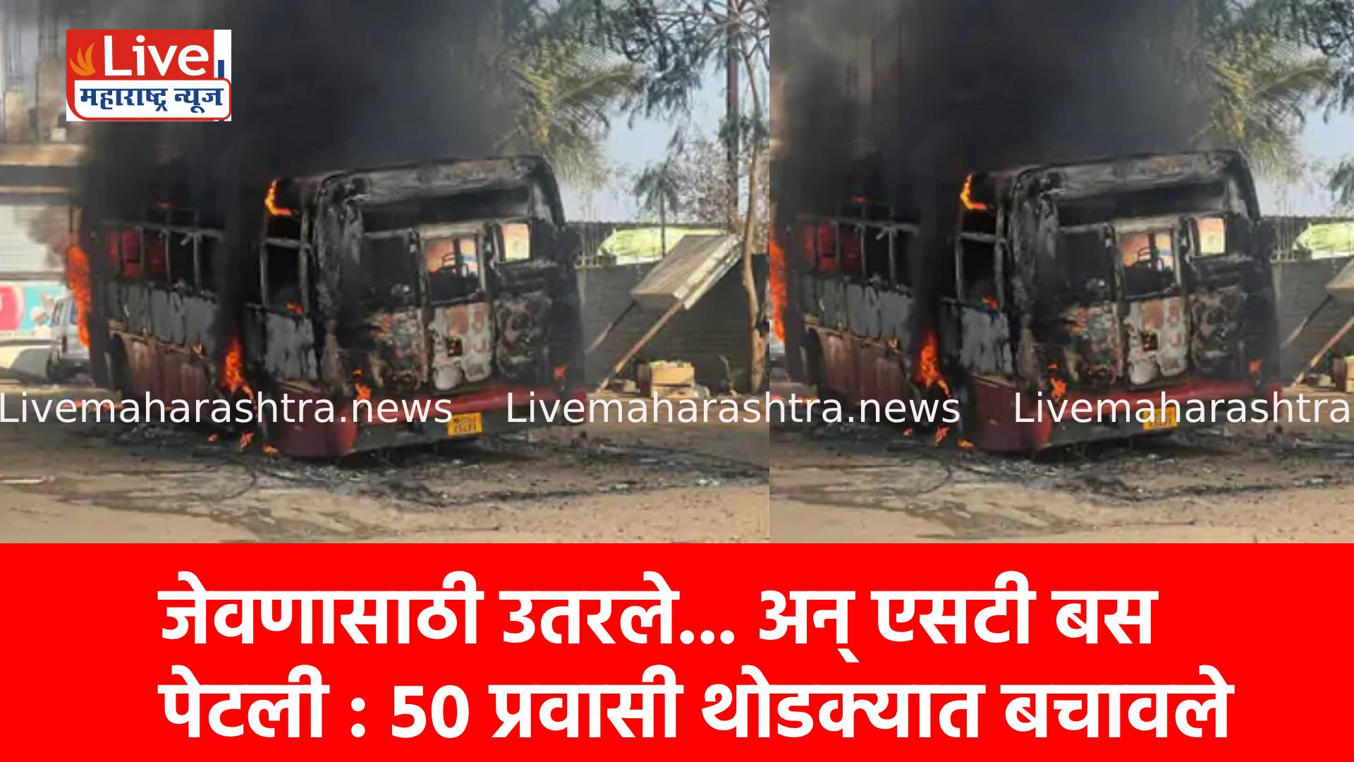 छत्रपती संभाजीनगर–धुळे महामार्गावर बुधवारी दुपारी एक भीषण घटना घडली. शहादा डेपोची शहादा–संभाजीनगर एसटी बस पळसवाडी शिवारातील हॉटेल आम्रपाली समोर थांबलेली असताना अचानक पेट घेतला. सुदैवाने सर्व प्रवासी जेवणासाठी खाली उतरलेले असल्याने ५० प्रवाशांचा जीव थोडक्यात बचावला, मात्र काही मिनिटांतच संपूर्ण बस जळून खाक झाली.