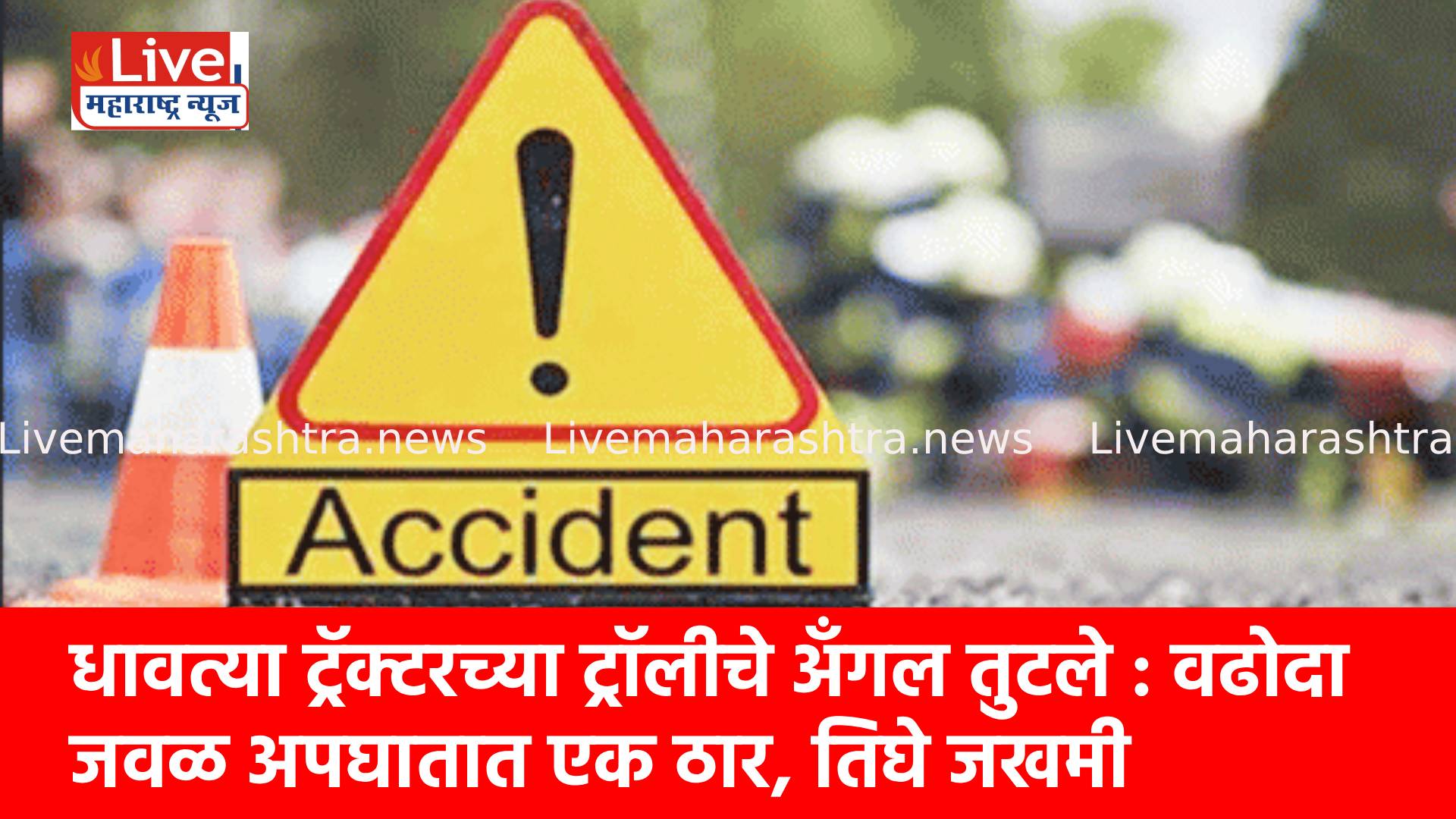 धावत्या ट्रॅक्टरच्या ट्रॉलीचे अँगल तुटले : वढोदा जवळ अपघातात एक ठार, तिघे जखमी