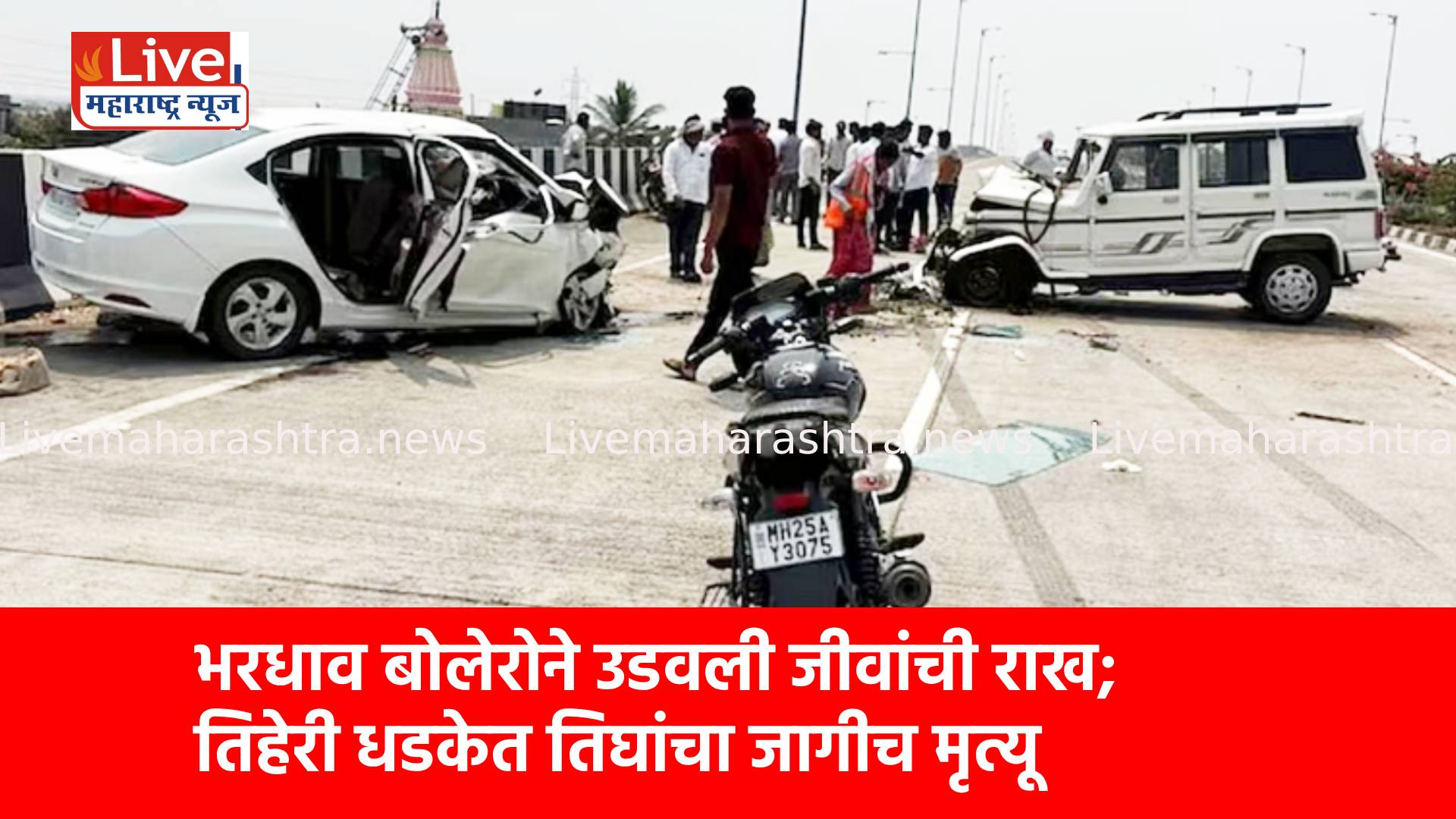 दरम्यान, समोरून येणारी होंडा सिटी कार बोलेरोवर जोरात आदळल्याने तिहेरी अपघात झाला. या भीषण धडकेत तिन्ही वाहनांचे मोठे नुकसान झाले असून गाड्यांचा अक्षरशः चक्काचूर झाला आहे.