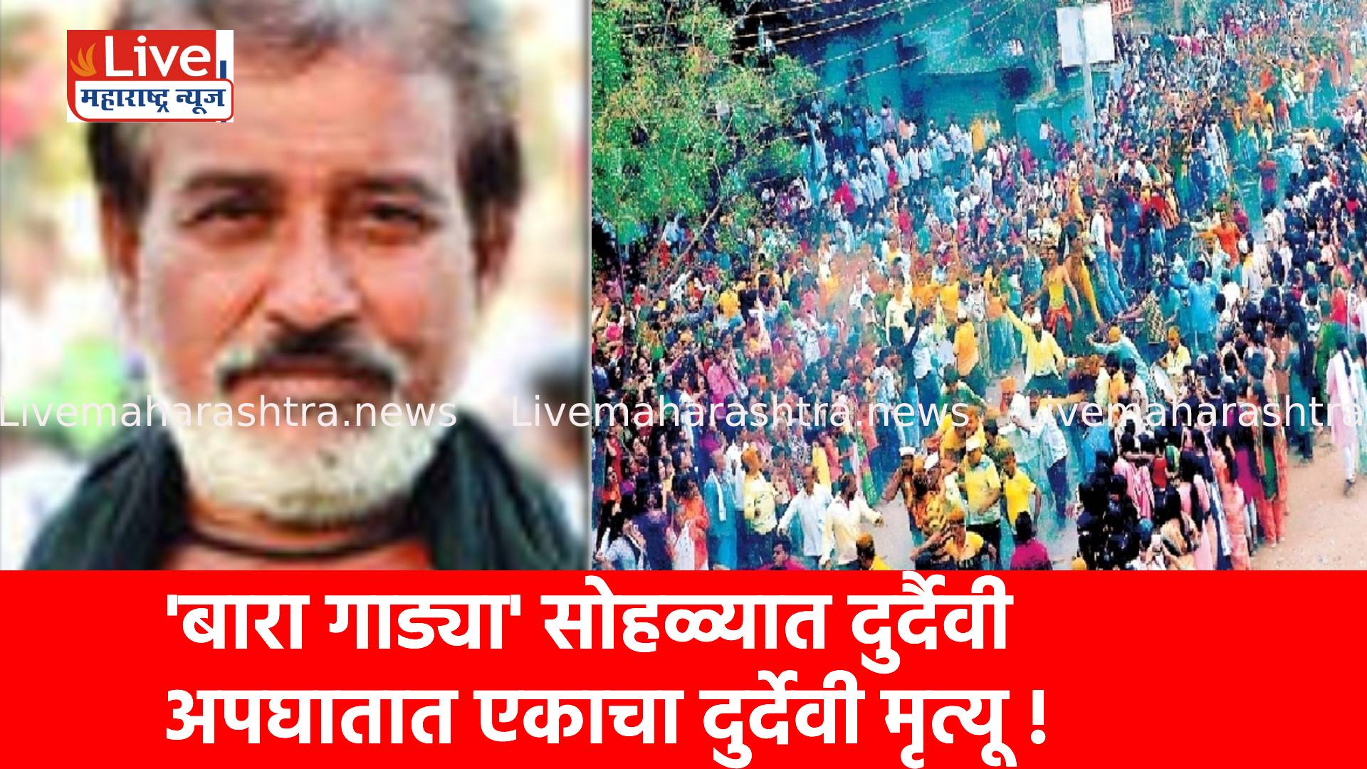 गुढीपाडव्याच्या उत्साहात रंगलेल्या गोजोरा गावात श्री मरी मातेच्या यात्रेदरम्यान पारंपरिक ‘बारा गाड्या’ सोहळ्यात दुर्दैवी अपघात घडून एका व्यक्तीचा मृत्यू झाल्याने संपूर्ण परिसरात शोककळा पसरली आहे. उत्सवी वातावरणात घडलेल्या या घटनेमुळे ग्रामस्थांमध्ये हळहळ व्यक्त केली जात आहे.
