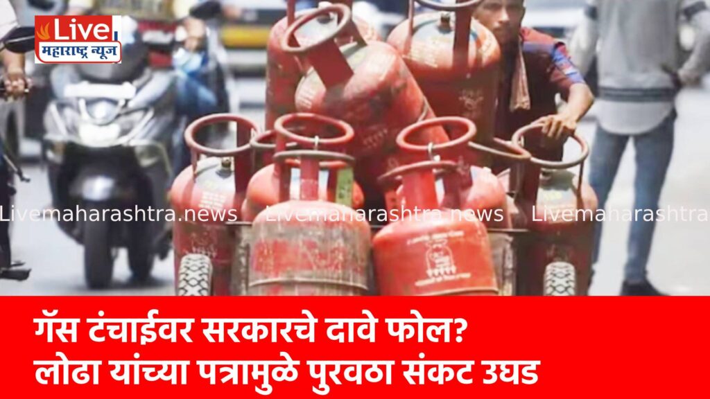 राज्याचे मंत्री मंगलप्रभात लोढा यांनी अन्न व नागरी पुरवठा मंत्री छगन भुजबळ यांना पत्र लिहून गॅस सिलिंडर्सची मागणी केली आहे. या पत्रामुळे राज्यात प्रत्यक्षात गॅस टंचाई असल्याचे अप्रत्यक्षपणे स्पष्ट होत असल्याची चर्चा राजकीय वर्तुळात रंगली आहे.