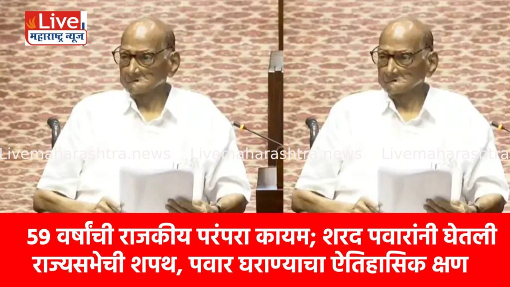 राष्ट्रवादी काँग्रेसचे ज्येष्ठ नेते शरद पवार यांनी आपल्या तब्बल ५९ वर्षांच्या प्रदीर्घ आणि यशस्वी संसदीय कारकिर्दीनंतर पुन्हा एकदा राज्यसभेच्या सदस्यत्वाची शपथ घेत नवा इतिहास रचला आहे. प्रकृती अस्वास्थ्यामुळे त्यांनी व्हीलचेअरवर बसून शपथ घेतली, मात्र त्यांच्या या कृतीने पुन्हा एकदा त्यांच्या जिद्दीचा प्रत्यय देशाला आला.