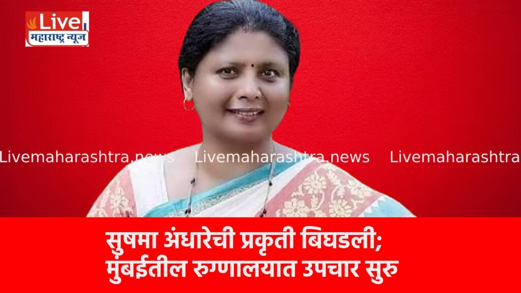 शिवसेना उद्धव बाळासाहेब ठाकरे पक्षाची प्रमुख महिला नेत्री आणि मुलूख मैदानी तोफ म्हणून ओळखल्या जाणाऱ्या सुषमा अंधारे यांची आज सकाळी अचानक प्रकृती बिघडल्याची माहिती समोर आली आहे. तातडीने त्यांना मुंबईतील ग्लोबल हॉस्पिटलमध्ये दाखल करण्यात आले असून, तज्ज्ञ डॉक्टरांच्या देखरेखीखाली उपचार सुरू आहेत. सध्या त्यांची प्रकृती स्थिर असल्याचे रुग्णालय प्रशासनाने कळवले आहे.