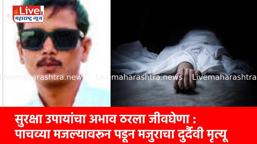 बांधकाम सुरु असलेल्या इमारतीच्या पाचव्या मजल्यावर काम करीत असलेला मजूराचा तोल जावून कोसळला. यामध्ये मुकेश गोकुळ सोनार (वय ३२, रा. तानाजी मालुसरे नगर, असोदा रोड) या बांधकाम मजूराचा दुर्देवी मृत्यू झाला. ही घटना दि. १३ एप्रिल रोजी दुपारच्या सुमारास मास्टर कॉलनी परिसरातील शेरा चौकात घडली. बांधकामाच्या ठिकाणी सुरक्षेच्या दृष्टीकोनातून कुठलीही उपाययोजना करण्यात आली नसल्याचा आरोप मयताचा भाऊ राकेश सोनार याने केला. याप्रकरणी एमआयडीसी पोलिसात अकस्मात मृत्यूची नोंद करण्यात आली आहे.
