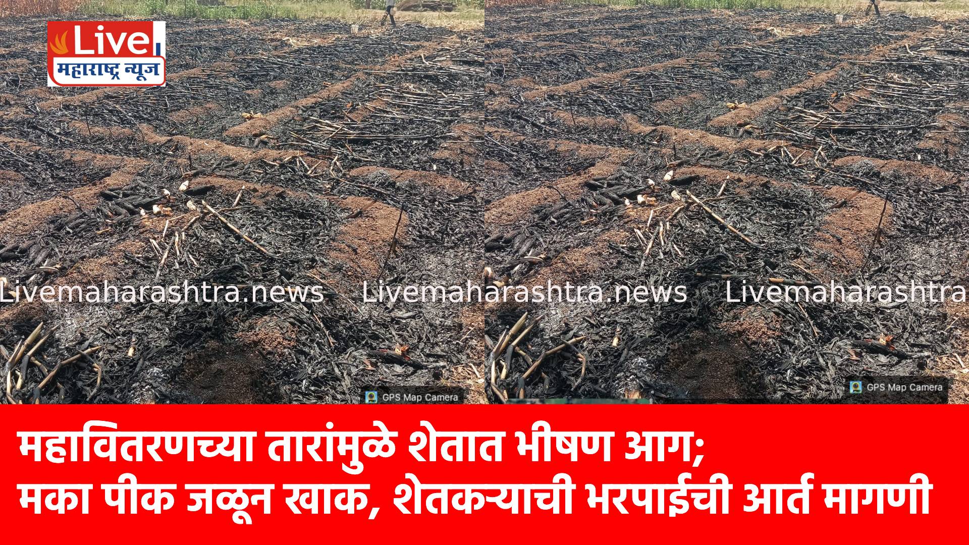याबाबत पुरुषोत्तम शंकर चौधरी (रा. वंजारी खपाट, ता. धरणगाव) यांनी तहसीलदार तसेच महावितरणच्या अधिकाऱ्यांकडे लेखी अर्ज सादर केला आहे. त्यांच्या म्हणण्यानुसार, त्यांच्या शेतातून जाणाऱ्या महावितरणच्या मुख्य वीजवाहिनीत अचानक शॉर्ट सर्किट झाले. यामुळे ठिणग्या उडून शेतात आग लागली आणि काही क्षणातच संपूर्ण मका पीक जळून गेले.