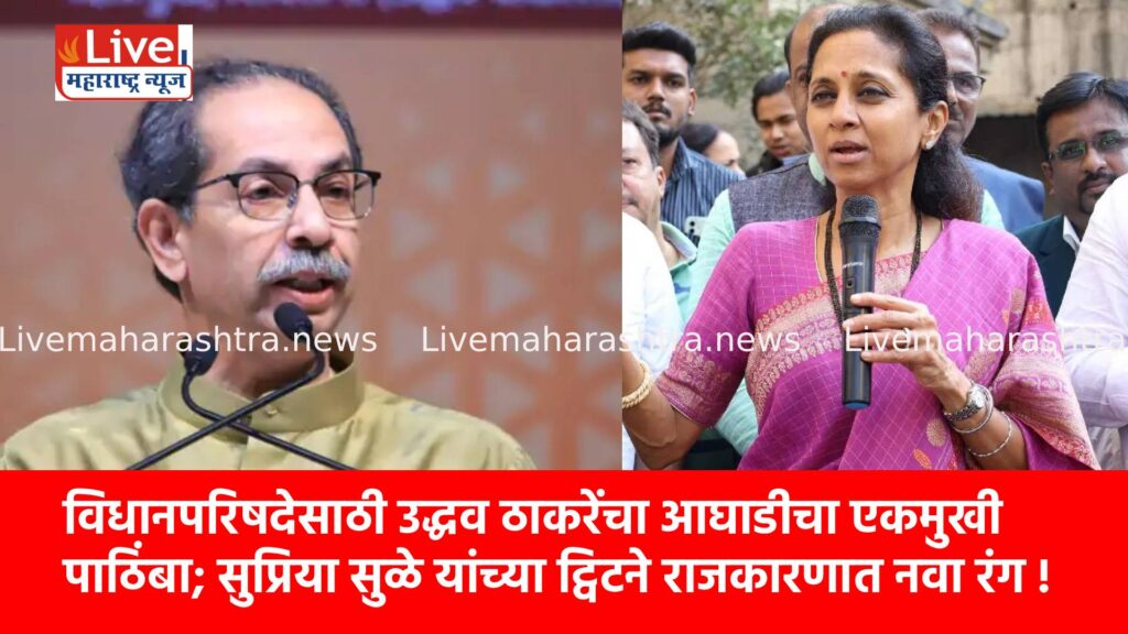 विधानपरिषदेसाठी उद्धव ठाकरेंचा आघाडीचा एकमुखी पाठिंबा; सुप्रिया सुळे यांच्या ट्विटने राजकारणात नवा रंग !