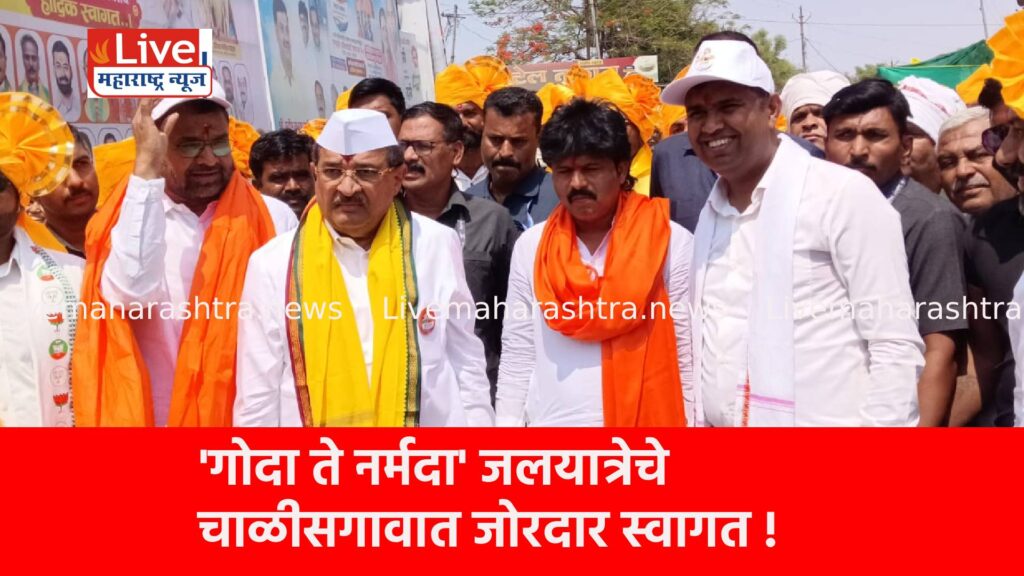 दक्षिणेकडील खान्देशाचे प्रवेशव्दार असणा-या चाळीसगावात मंगळवारी कन्नड घाटाच्या पायथ्याशी पुण्यश्लोक अहिल्यादेवी होळकर यांच्या गगनभेदी गजरात श्रीक्षेत्र त्र्यंबकेश्वर मंदिर आणि चौंडी येथून प्रारंभ झालेल्या ‘गोदा ते नर्मदा’ पुण्यश्लोक अहिल्यादेवी होळकर जलयात्रेचे दूपारी जोरदार स्वागत करण्यात आले. पुण्यश्लोक अहिल्यादेवी होळकर यांच्या त्रिशताब्दी जयंतीनिमित्त या जलयात्रेचे आयोजन करण्यात आले असून तिचा खान्देशात प्रवेश झाला आहे. आमदार मंगेश चव्हाण यांनी यात्रेचे स्वागत केले.